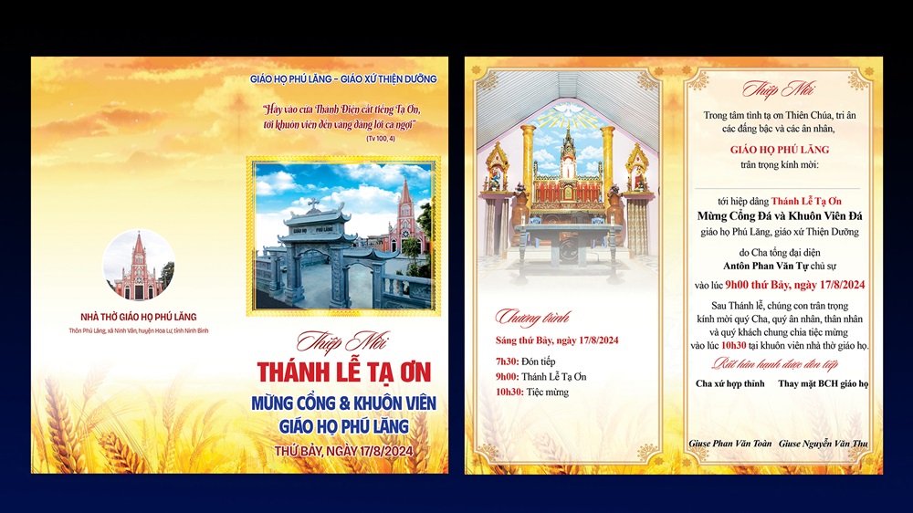 Thiệp mời khánh thành khuôn viên nhà thờ Giáo họ Phú Lăng, Giáo xứ Thiện Dưỡng (Phát Diệm)